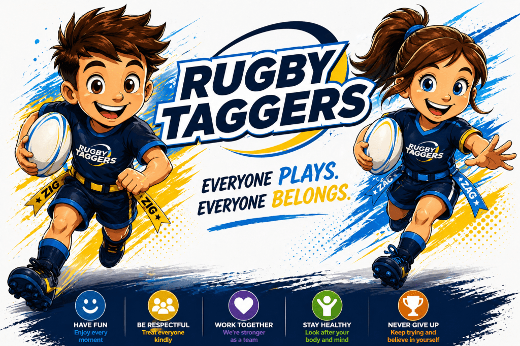 Rugby Taggers is Non Contact Tag Rugby for boys and girls aged 2.5 – 14 years old.